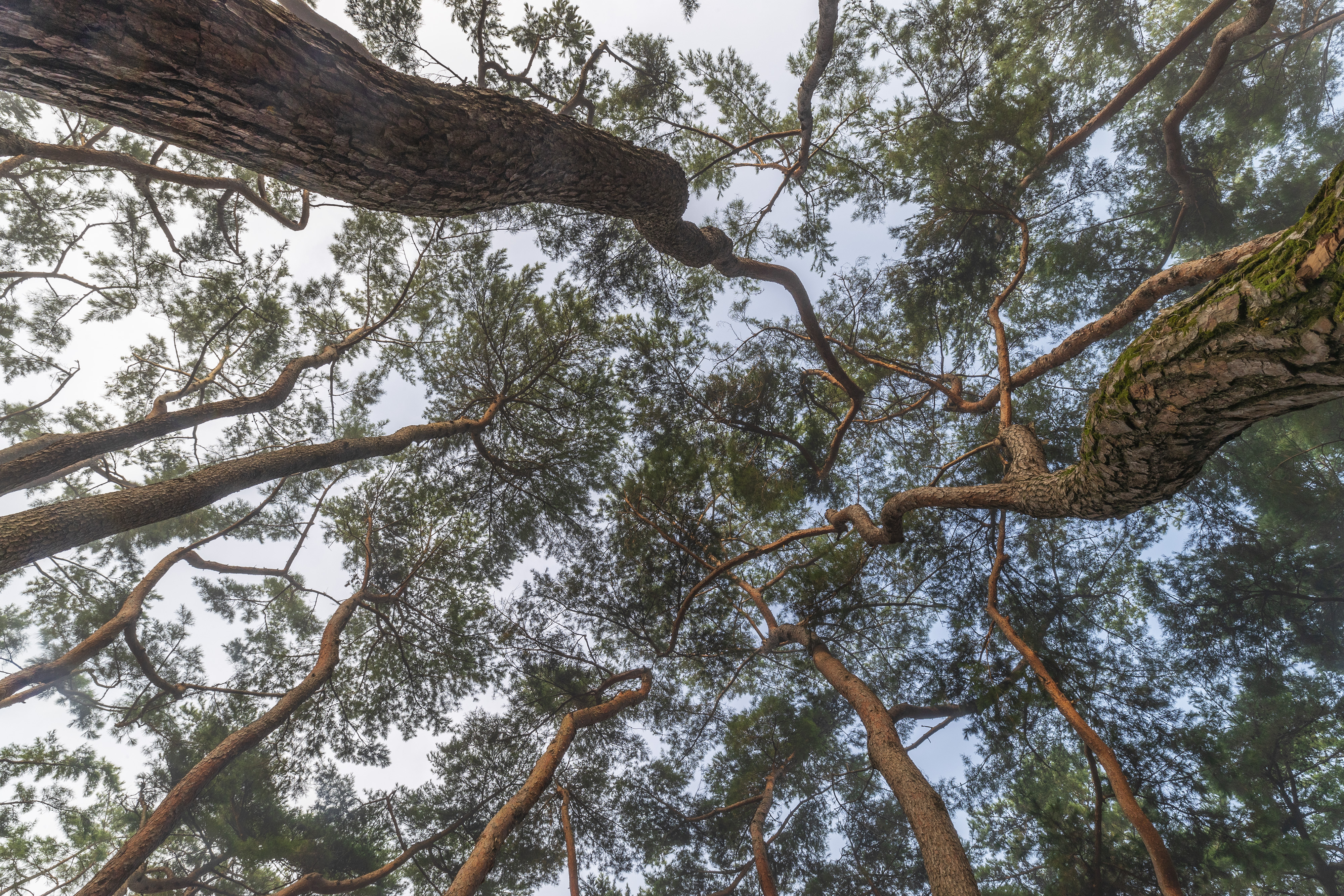 잠시 하늘을 바라보면 소나무가 춤을 추면서 하늘로 올라가는 것 같습니다.