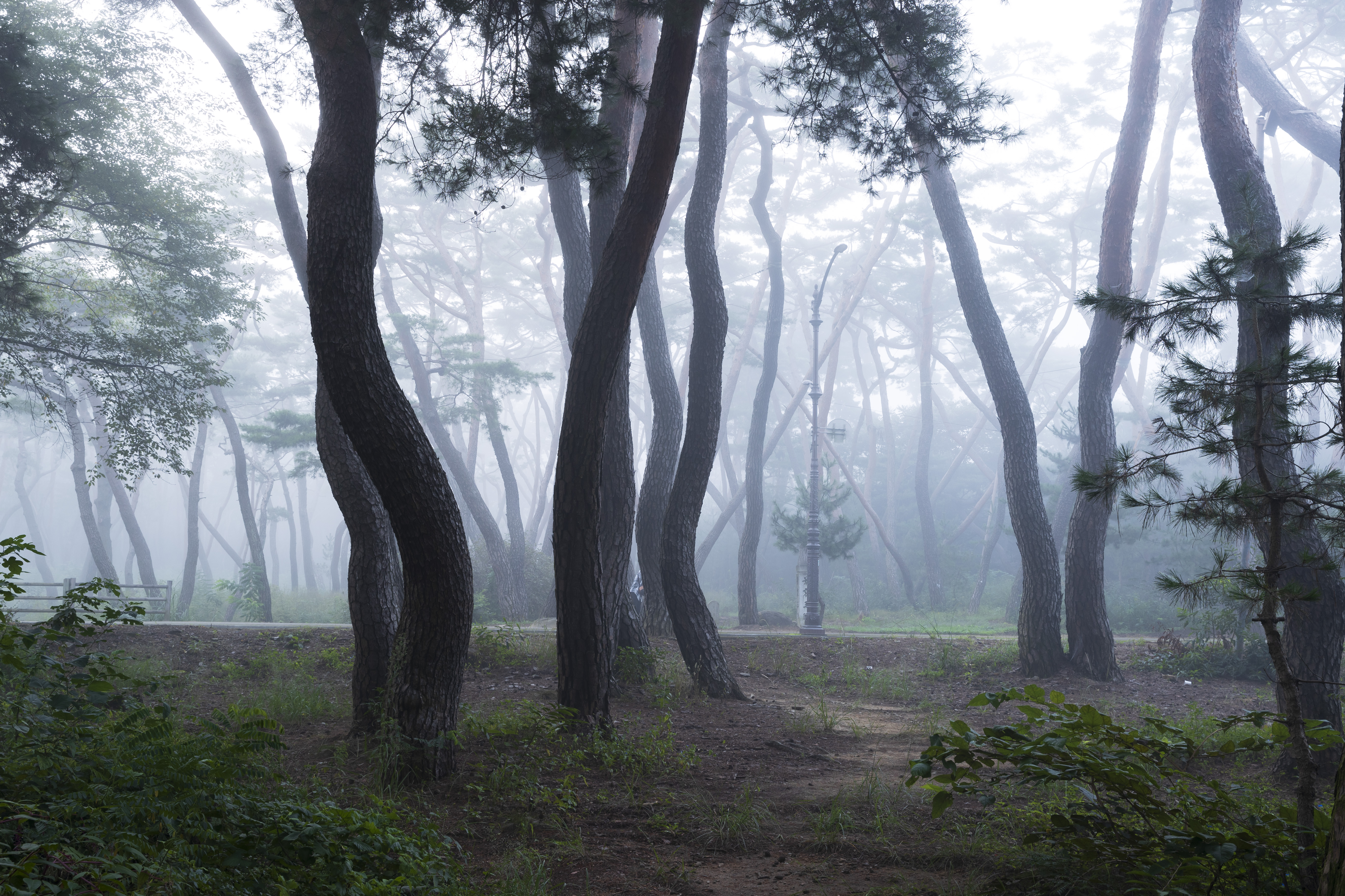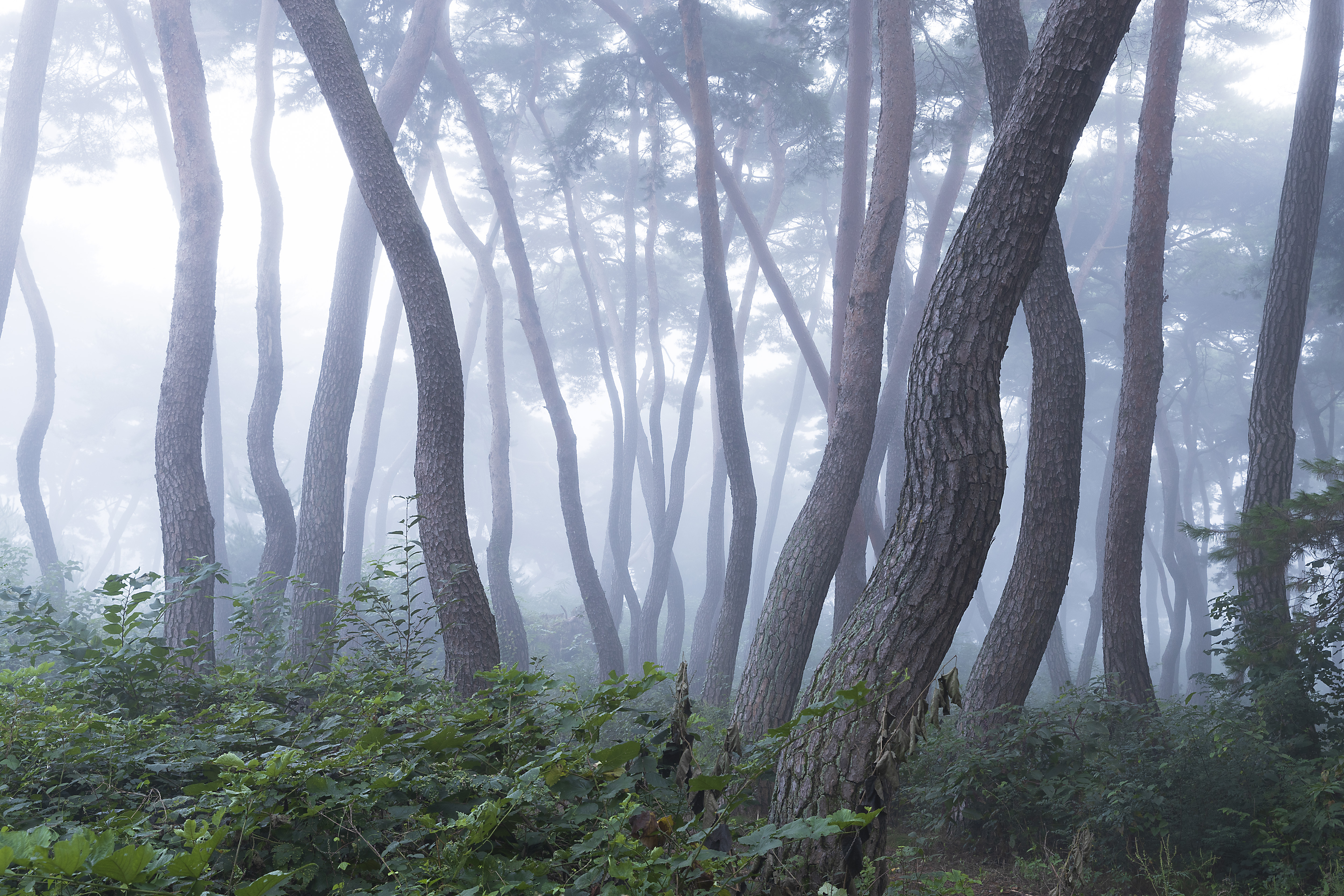 안갯속에서 춤을 추는 소나무들을 바라보면 가슴이 벅차옵니다.