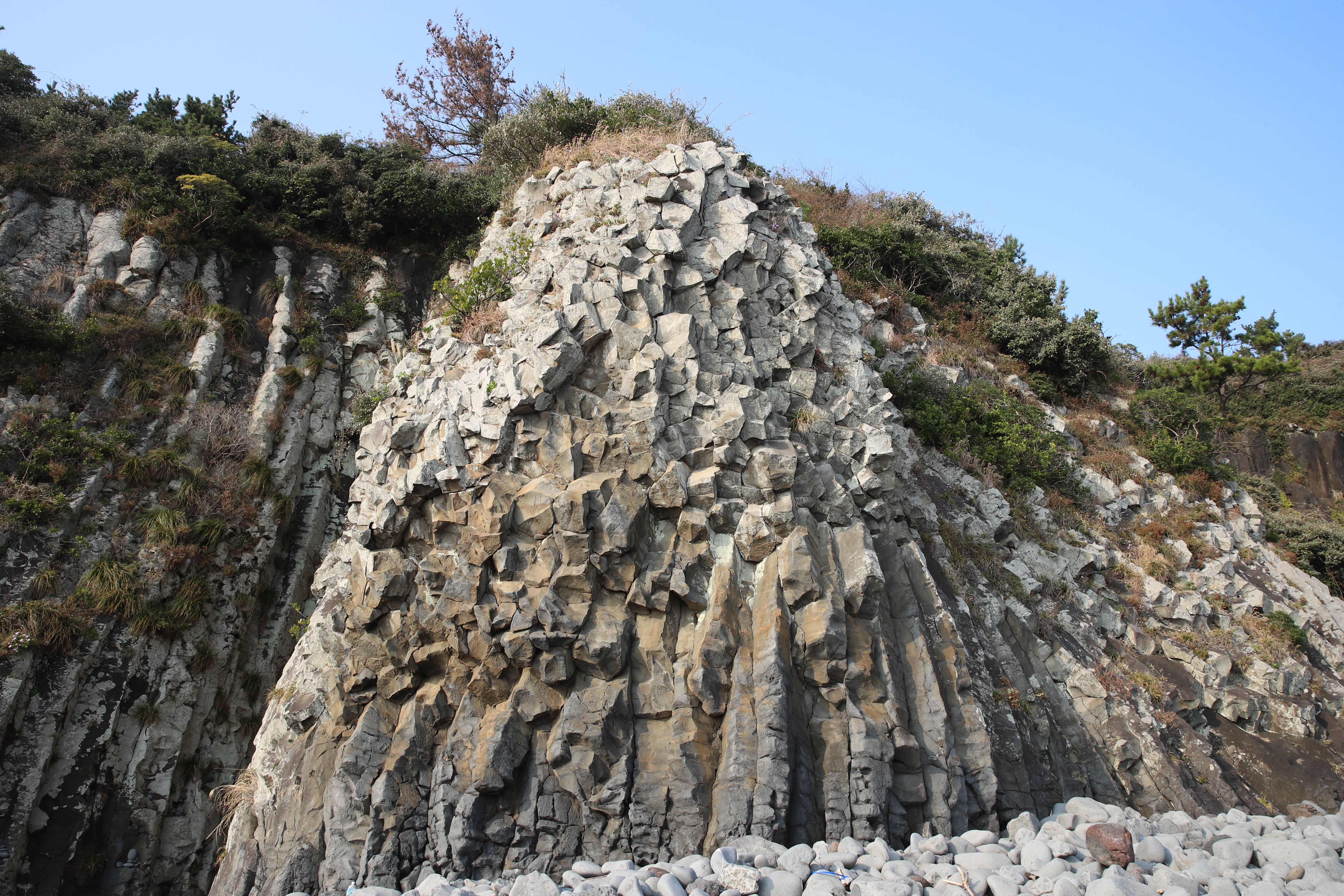 신이 다듬은 듯 하늘로 뻗은 돌기둥 해안이 갯깍 주상절리대라고 합니다.