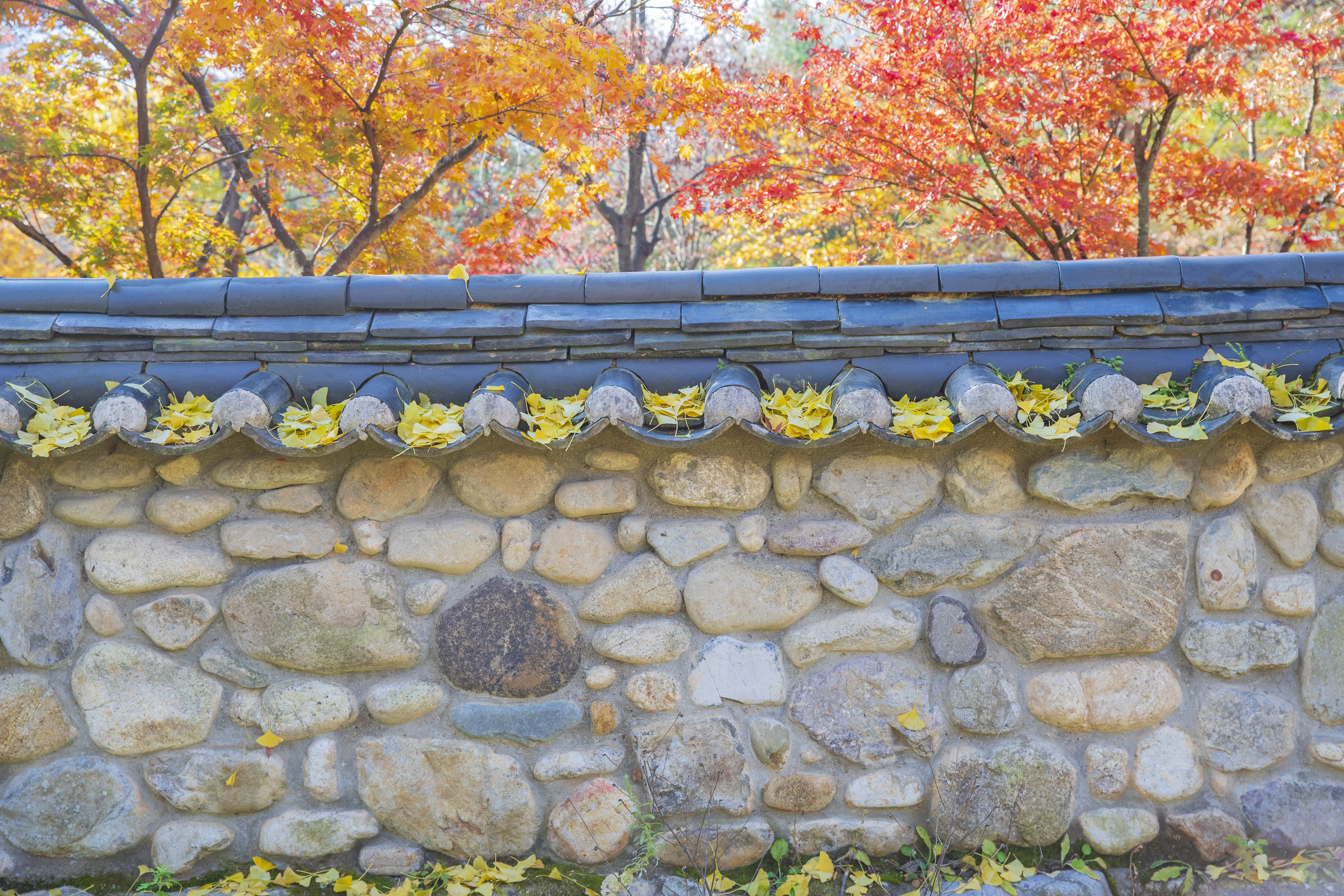 가을이 기와 담장에 예쁘게 내려앉아 가는 길을 붙잡습니다.